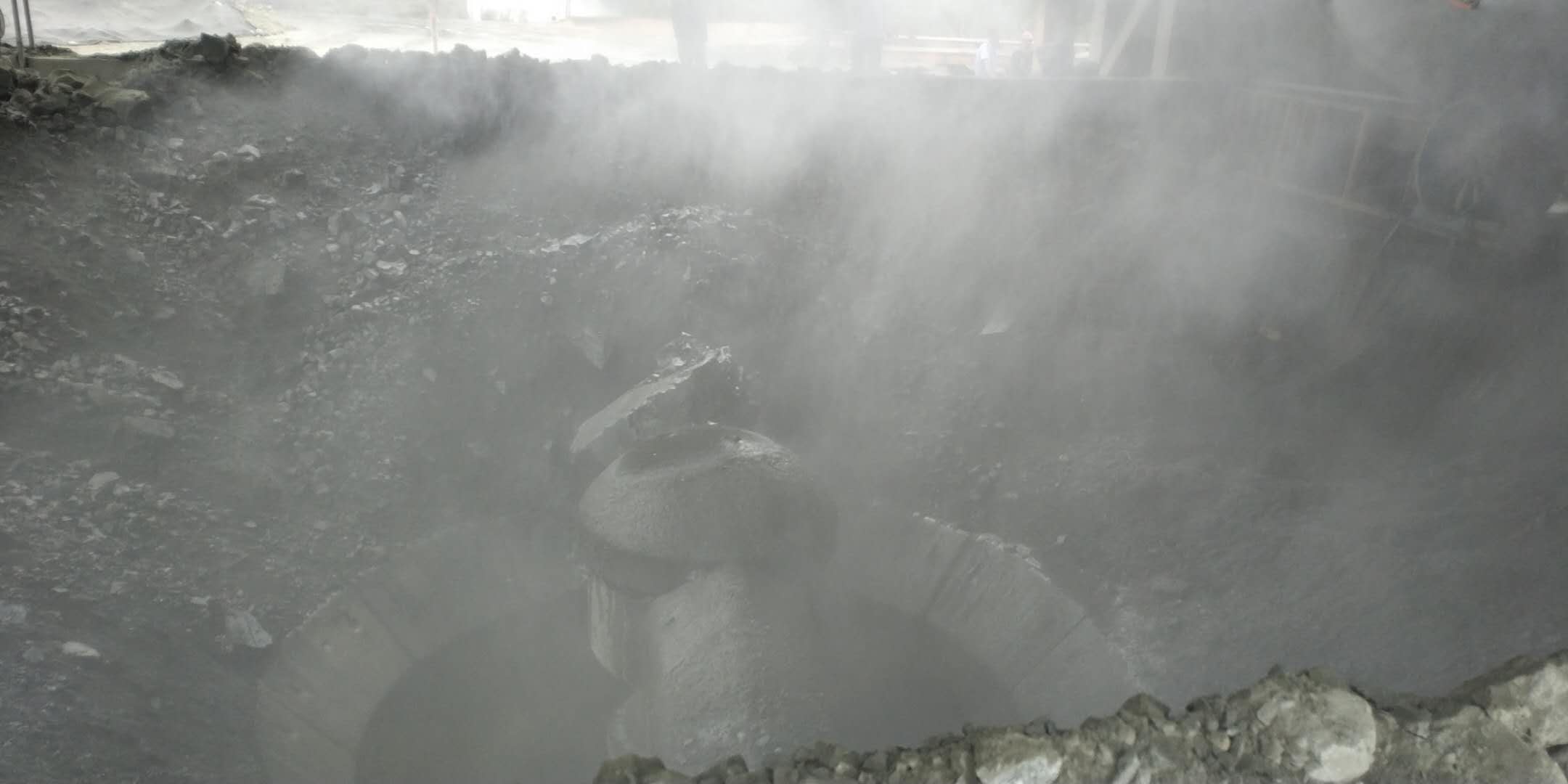 礦流在下落過(guò)程中,由于剪切氣流和誘導空氣的作用,剪切氣流也會(huì )使部分粉塵從礦流中擴散出來(lái)。對于機頭噴霧,在裝載機系統工作之前大約一到兩分鐘,開(kāi)啟大噴槍射流噴霧系統,對準裝載機機頭,采用上空斜向下霧流噴霧。這樣既預先潤濕了球團鐵礦,減少了產(chǎn)塵量,同時(shí)也有效控制了產(chǎn)生的粉塵,減少了粉塵的逃逸。