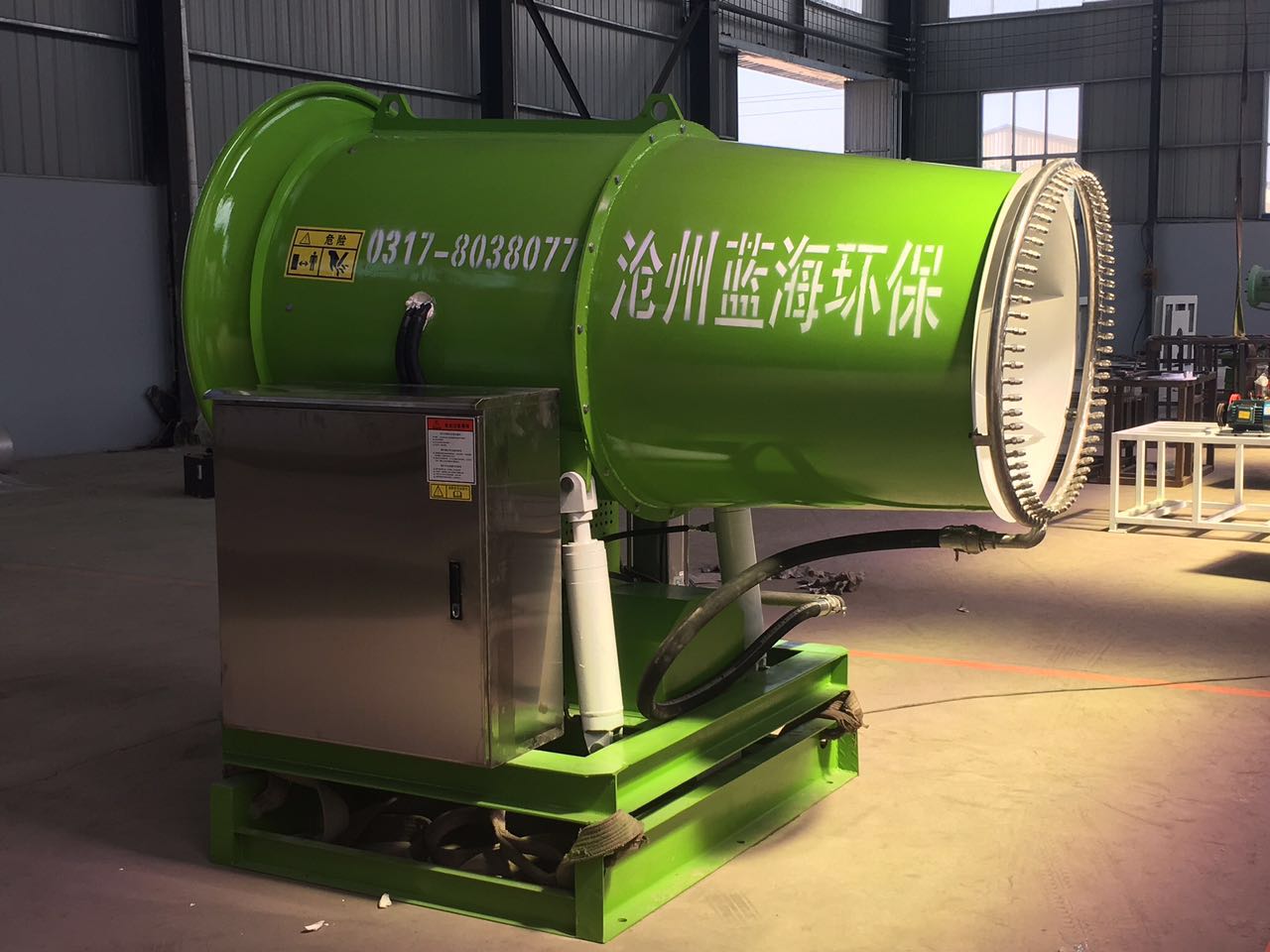 7. 性高:霧炮使用環(huán)境惡劣,不穩定因素較多,所有重要零部件都采用進(jìn)口,具備自己斷電保護,配置點(diǎn)擊均加速啟動(dòng)裝置,減少風(fēng)機震動(dòng),配置液壓轉動(dòng), 解決 隱患,杜絕 事故發(fā)生。