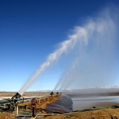 機械蒸發(fā)的原理是利用 殊壓力噴嘴及 風(fēng)機合成的機械力將水霧化成微米級的微細水珠,噴射到目標區上;此時(shí)霧滴的相對比表面積急劇增加,造成污水在自然條件下的快速蒸發(fā)。根據用戶(hù)蒸發(fā)量需求及當地溫度、濕度、風(fēng)速、水質(zhì)和場(chǎng)地等條件,滄州藍海環(huán)保設備有限公司通過(guò)兩年的研發(fā)設計,研發(fā)的設備可控制水珠大小、移動(dòng)速度與方向,解決了結垢、懸浮物、鹽結晶等眾多因素對蒸發(fā)效果的影響,并規避鹽的飄散,從而保證一方面能大規模地蒸發(fā)水,另一方面又能防止對環(huán)境的污染。